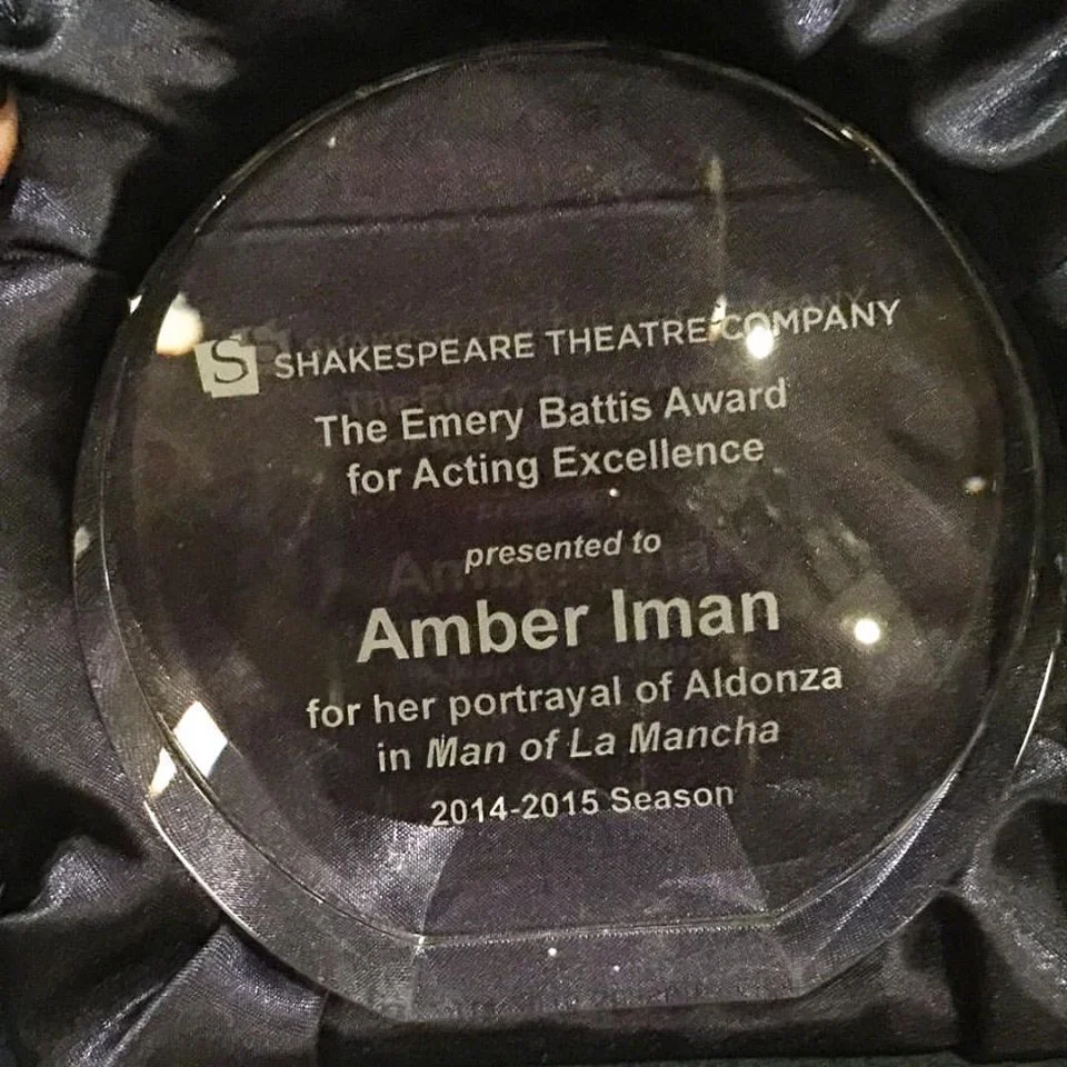 I still don't have the words to express my gratitude. After 3 months in DC, playing Aldonza in "Man of La Mancha" at the Shakespeare Theatre Company, I was awarded the Emery Battis Award for Acting Excellence. Along with the gorgeous crystal sculpture, they threw in a cool $5,000, the generosity of an anonymous donor. I am so grateful, overwhelmed with gratitude for the love and encouragement from everyone at STC. I have to thank Michael Kahn and Alan Paul, especially, for believing in me and giving me the opportunity to tell such a beautiful story. Hard work pays off. Keep pressing!!!!